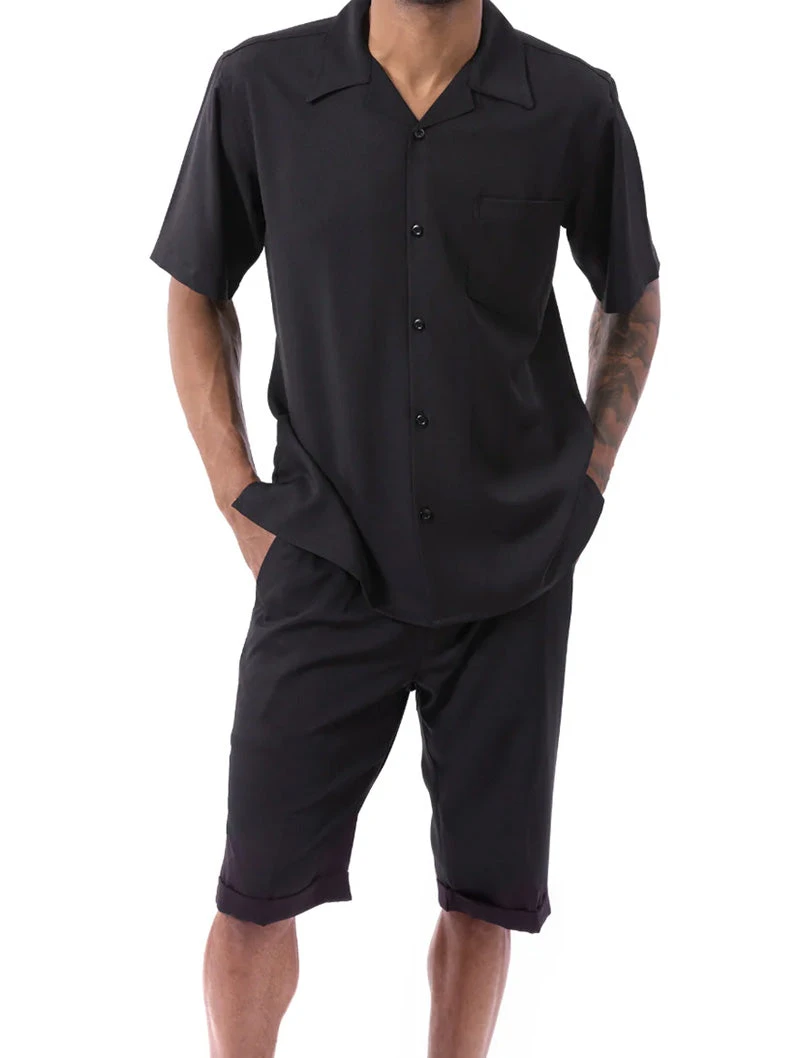 Lavender Tone On Tone Vertical Stripes Walking Suit 2 Piece Short Sleeve Set With Shorts