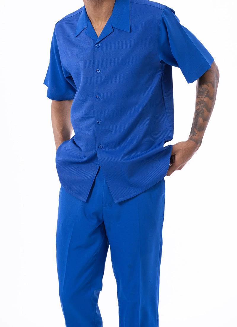 Cobalt Blue Walking Suit Tone On Tone Vertical Stripes 2 Piece Short Sleeve Set