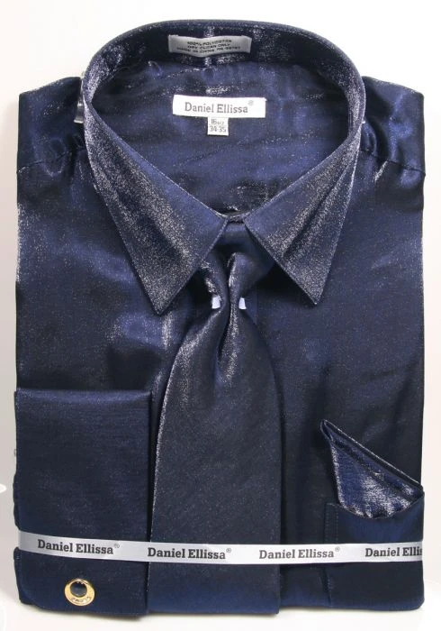 Navy Metallic Velvet Dress Shirt Set French Cuff