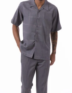 Cobalt Blue Walking Suit Tone On Tone Vertical Stripes 2 Piece Short Sleeve Set With Shorts